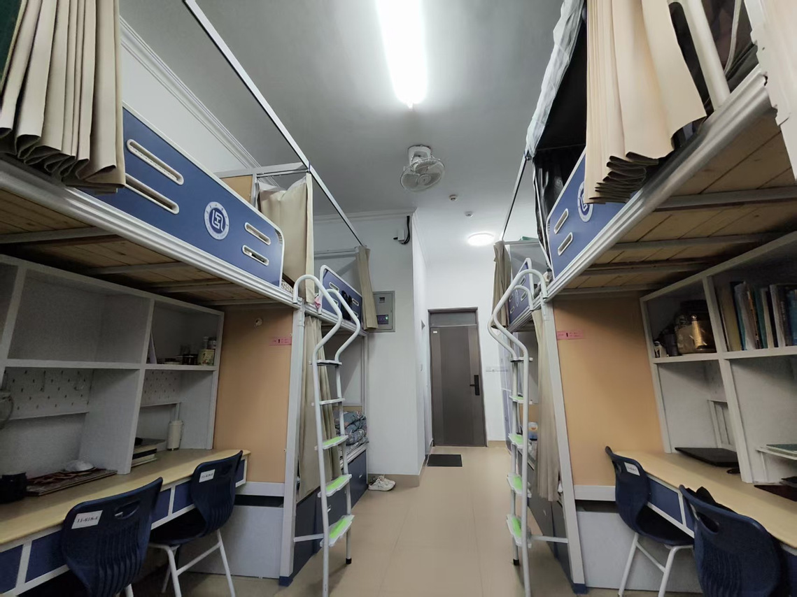走进11号楼618宿舍,整洁有序的环境令人印象深刻。六张床铺被褥平整、摆放统一,书桌与收纳柜整洁协调,各类物品分类归置、井井有条。从洞洞板上的细致收纳,到桌面线路的隐蔽整理,每一处细节都体现出同学们对“六净四无三整齐”标准的深入践行。宿舍成员之间分工明确、协作默契,将内务整理融入日常,以持续的实际行动共同营造出兼具功能性与舒适度的居住空间。