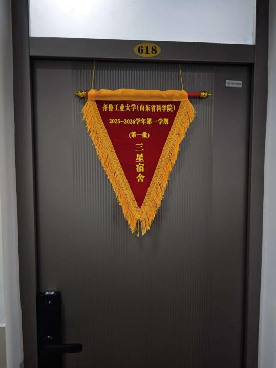 在齐鲁工业大学(山东省科学院)全面推进“星级宿舍”创建工作的背景下,海洋学部11号楼618宿舍凭借持续优异的内务表现与规范的日常管理,成功获评2025-2026学年第一学期第一批校级“三星宿舍”荣誉称号,充分展现了学部在学生公寓文明建设方面的扎实成效,也为广大同学树立了标杆。